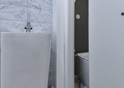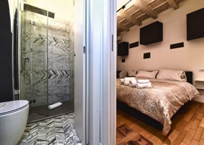 Ogni elemento è scelto per trasmettere equilibrio e comfort: dal pavimento in legno alla luce calda che filtra dalle tende, fino ai piccoli oggetti che rendono l’ambiente personale ma mai invadente. La suite è dotata di tutti i principali servizi, ma ciò che la distingue è l’armonia degli spazi e il senso di benessere che si respira appena varcata la soglia.