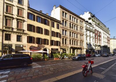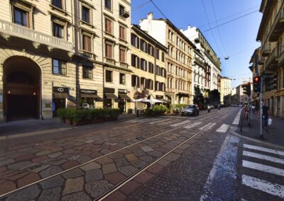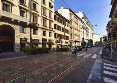 Il quartiere è tranquillo ma vivo, con caffetterie storiche, ristoranti raffinati e boutique milanesi.