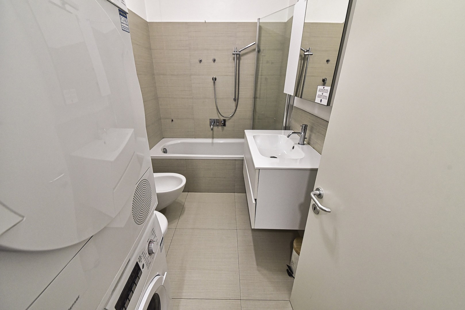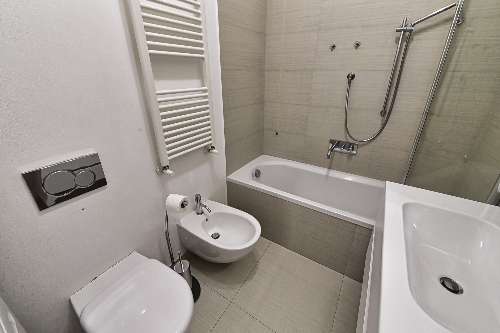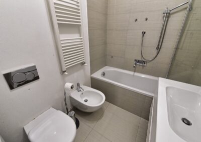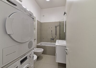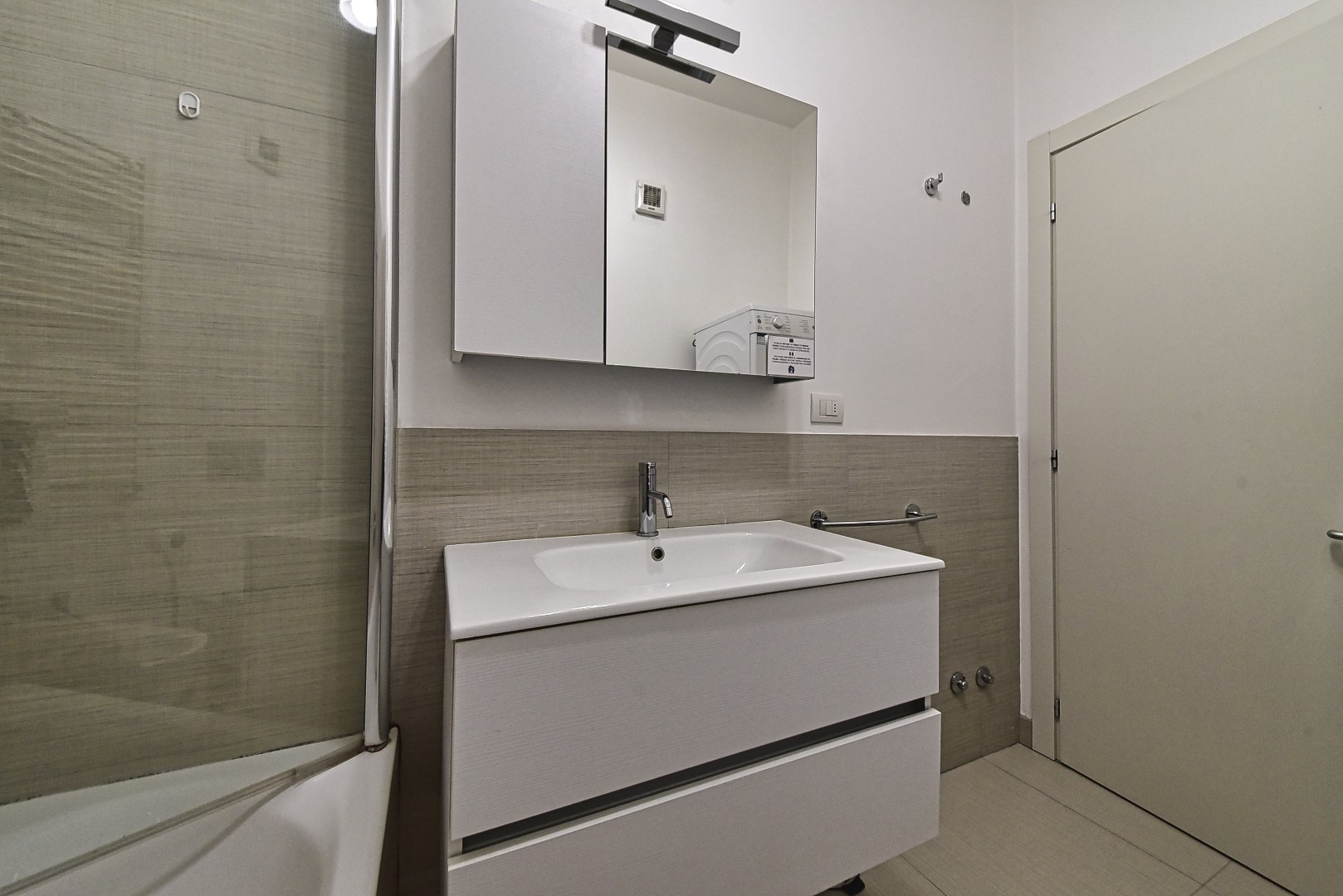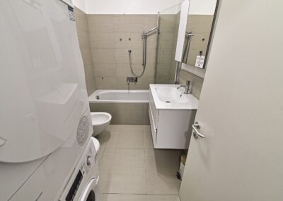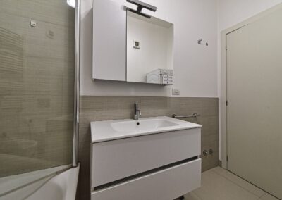 Il bagno, elegante e ben proporzionato, è stato progettato per essere pratico ma gradevole, con materiali moderni e dettagli che rendono l’utilizzo quotidiano semplice e piacevole.