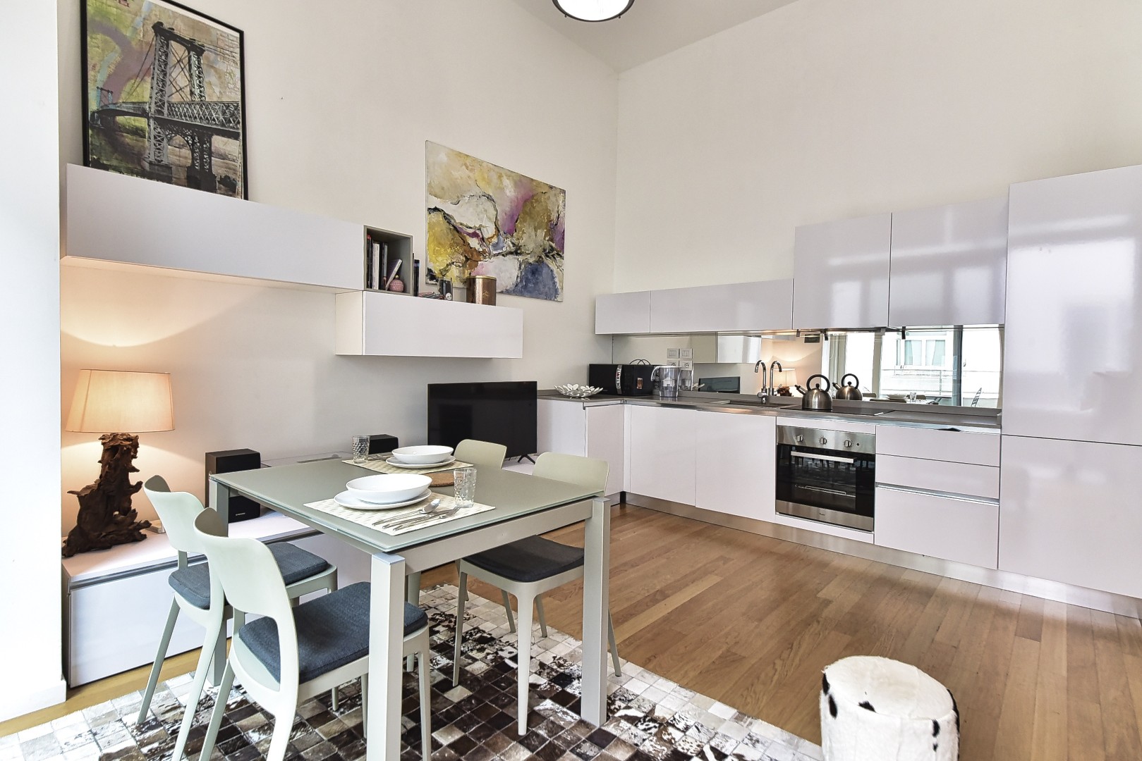 Gli ambienti della Suite Navigli sono ampi e accoglienti, pensati per offrire un soggiorno piacevole sia per brevi periodi che per permanenze più lunghe.